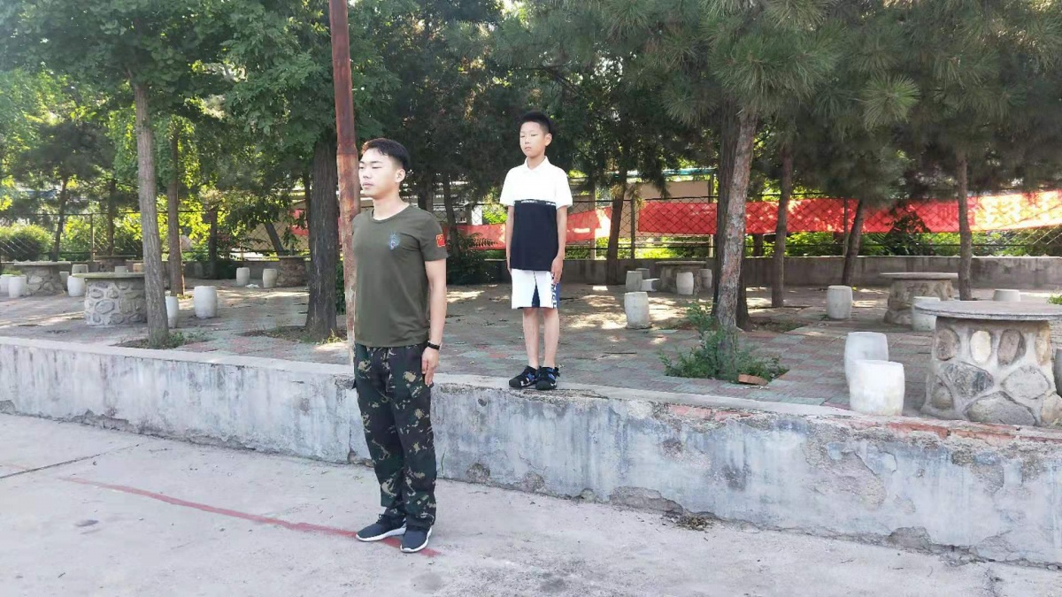 我们的训练正式开始。第一项,站军姿。所有的动作要以军姿为标准。