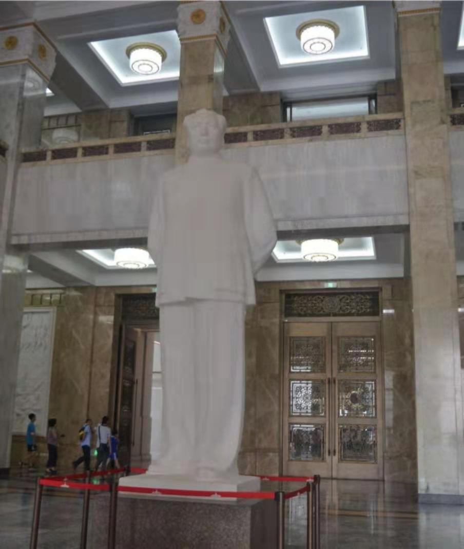 “哇”孩子们惊叹。原来,军事博物馆为毛主席雕了一座雕像,矗立在军事博物馆一楼正厅。据说,这座石头很有来历,是明成祖朱棣用来建造故宫的石料,没有一块黑斑。这座雕像给了孩子们深深的震撼,“我们的参观马上开始",孩子们纷纷开始迫不及待。